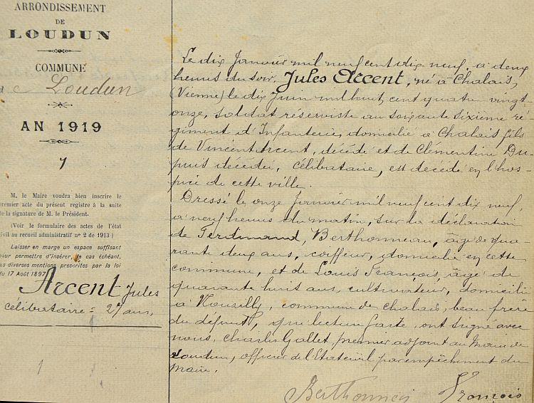 Chalais 10 Juin 1891 - Loudun 10 Janvier 1919