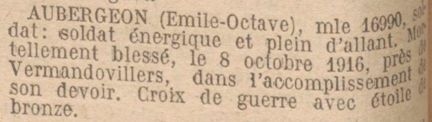 Disparu le 7 Octobre 1916 Bois de Page (Vermandovillers) boyau du pape (présumé tué). Avis officiel du 8 Décembre 1916 N° HO 7575.