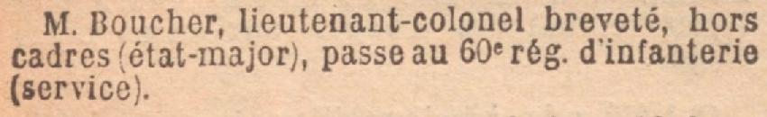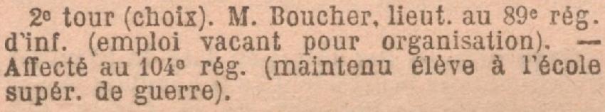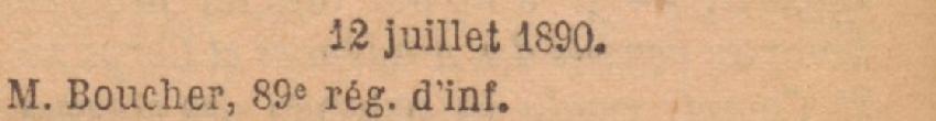Promu au grade de Lieutenant, décret du 12 Juillet 1890, au 89e Régiment d'Infanterie.