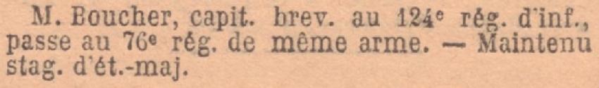 Passe au 76e Régiment d'Infanterie le 8 Janvier 1897.