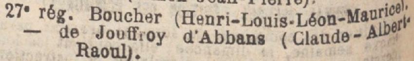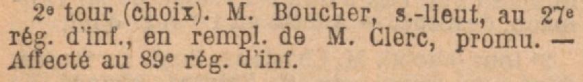 Sous-lieutenant au 27e Régiment d'Infanterie le 1e Octobre 1886.