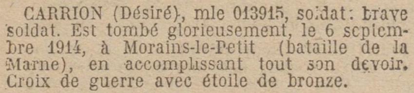 Disparu du 6 au 8 Septembre 1914, au cours des Combats de la Marne.