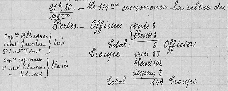 Passé au 125e Régiment d'Infanterie le 14 Mai 1915.