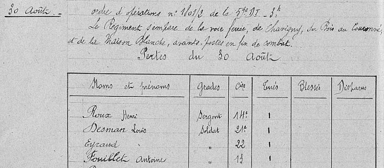 Arrivé au corps le 7 août 1914.