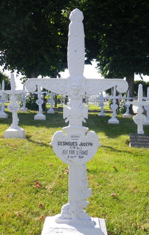 Décédé des suites de blessures de guerre le 6 Novembre 1914 à l'hôpital auxiliaire St Paul à Cherbourg ainsi qu'il résulte d'une note de l'hôpital au Préfet maritime de Cherbourg en date du 7 novembre 1914 et d'une communication de l'Intendance de Poitiers du 28 Janvier 1915.