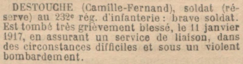 Ordre du Grand Quartier Général n° 4447D du 26 Janvier 1917. Brave soldat est tombé glorieusement blessé le 10 Janvier 1917 en assurant un service de liaison dans des circonstances difficiles et sous un violent bombardement.