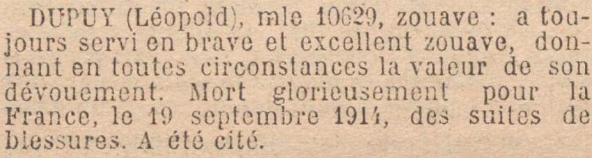 Incorporé (au 2e Régiment de Zouaves) à compter du 8 octobre 1913, arrivé au Corps le 19 du dit et Zouave de 2e classe.