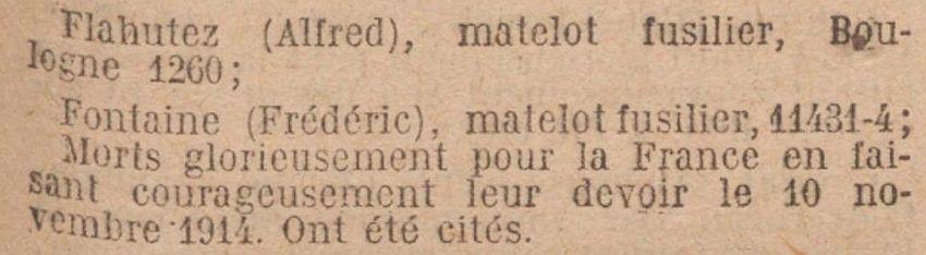 Tué à Dixmude (Belgique) le 10 Novembre 1914.