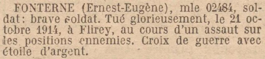 Disparu le 21 Octobre 1914 au Combat au nord de Flirey.