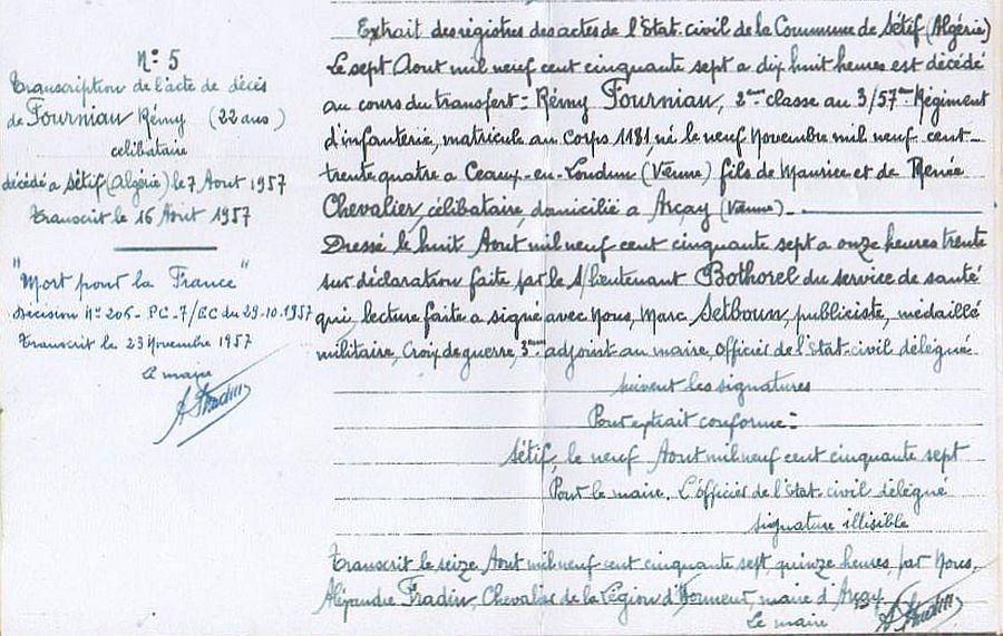 FOURNIAU Rémy figure sur le Monument aux morts d'Arçay.