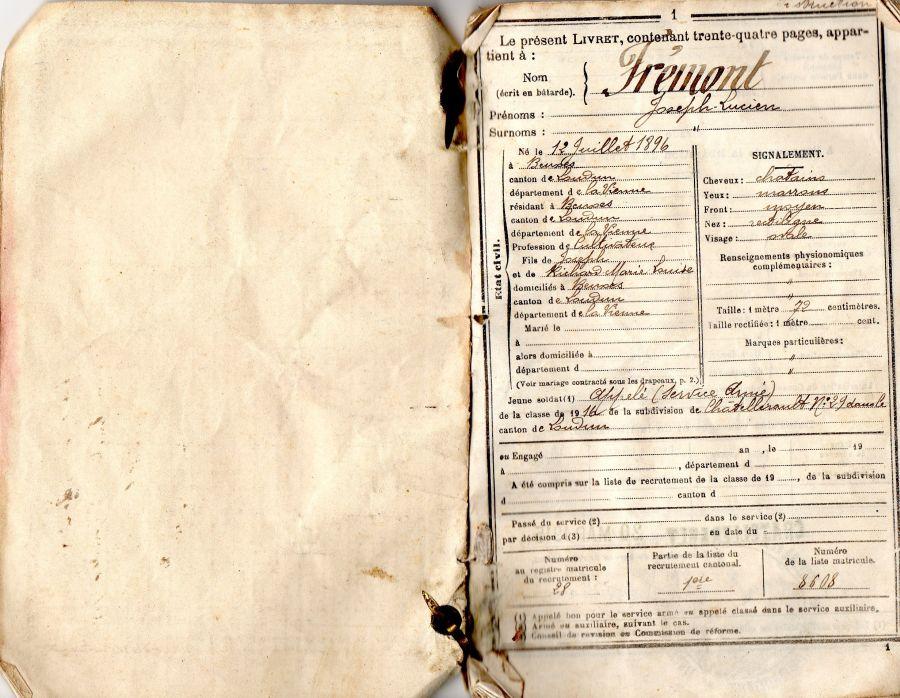 Passé au 28e Régiment d'Infantere le 1er Mai 1916.