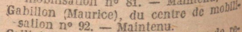 Maintenu au Centre de Mobilisation d'Infanterie N° 92.