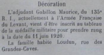 Médaille Militaire (décret du 4 février 1921).
