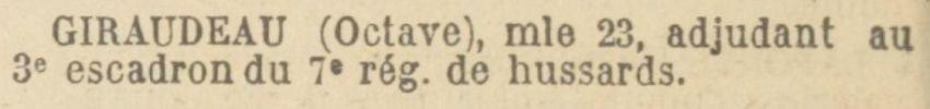 "Le 22 Octobre 1904 à 2h de l'après-midi, étant à la promenade des jeunes chevaux, a été fiché à terre par son cheval; dans sa chute le M. d. L. Giraudeau n'a pû se relever étant évanoui et a dû être transporté d'urgence à l'hôpital".