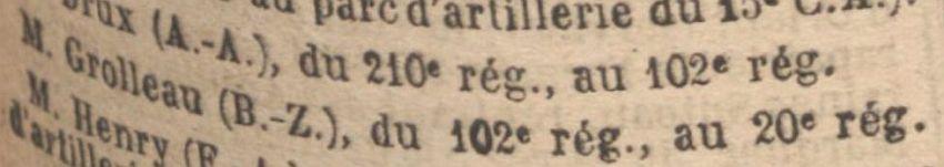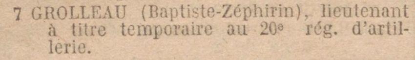 Passé au 20e Régiment d'Artillerie le 21 Août 1919. J.O. du 13 Août 1919.