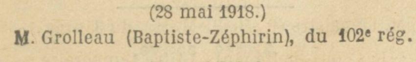 Passé au 102e Régiment d'Artillerie Lourde le 26 février 1918.