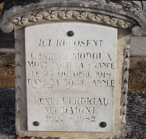 Décédé le 24 Octobre 1918 dans ses foyers - Avis de décès de la mairie de Beuxes en date du 1 Décembre 1919.