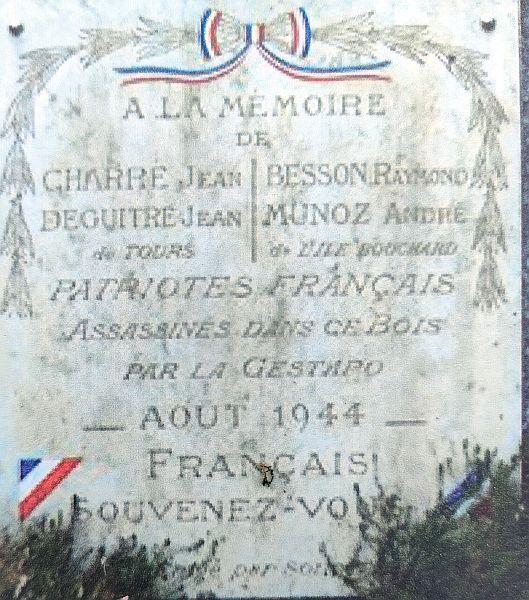 Jean Charré, né au Blanc, et son camarade de Tours, Jean Deguittre, 2 jeunes F.F.I. (Forces Françaises de l'Intérieur) du groupe Gille, furent arrêtés le dimanche 27 août 1944. Torturés par la gestapo, installée à Saint-Avertin, ils furent éxécutés dans ce vallon.