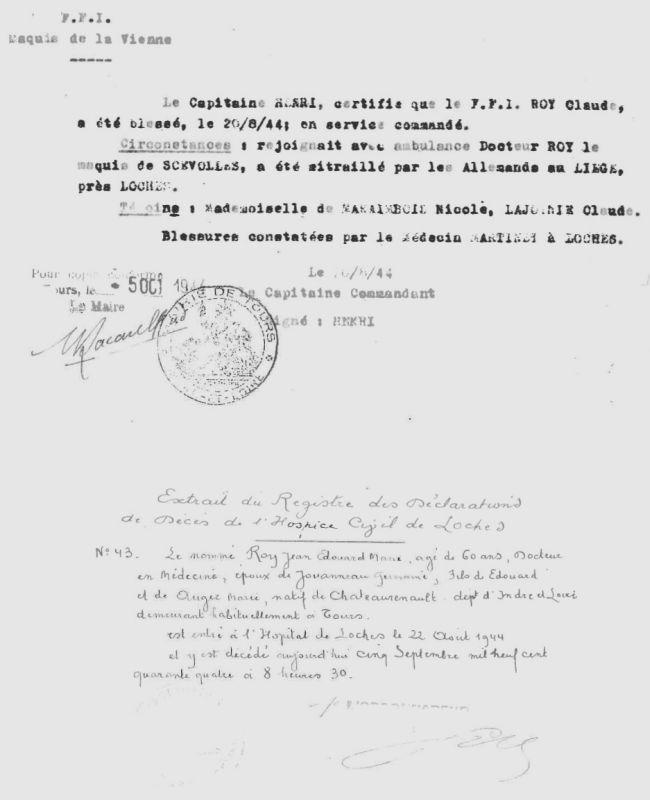 Gérard Roy est l'un des fils du Dr Jean Roy qui fut abattu par les Allemands près de Loches (au Liège ) alors qu'il tentait de rejoindre le maquis de Scévolles.