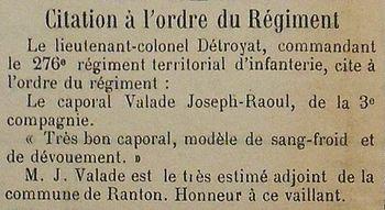 Passé au 276e Régiment Territorial d'Infanterie le 1er Août 1915.