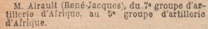 Affecté au 20e Régiment d'Artillerie le 16 novembre 1920 ordre de Monsieur le Général Gouverneur de Marseille.