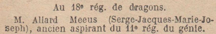 Nommé Sous-Lieutenant de réserve, de cavalerie par décret du 24 janvier 1925 J.O. du 1er févier 1925 par D.M. du même jour, affecté au 18e Régiment de Dragons.