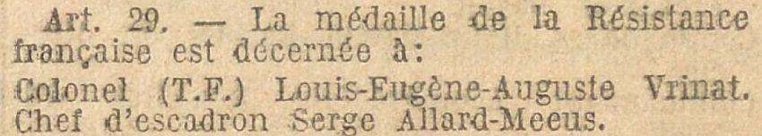 Cité à l'ordre du Régiment N° 219 le 4-4-18 "Jeune brigadier plein d'allant et de gaieté, le 27 Mars faisant partie d'une reconnaissance chargée de renseigner le commandement sur l'avance ennemie et dans un moment critique a porté un renseignement important au Généralde Brigade sur une route violemment bombardée. A montré le plus grand esprit d'initiative à tout instant à se tenir au courant des évènements".