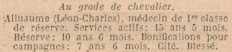 Médecin de 3e classe auxiliaire le 1er Novembre 1919.
