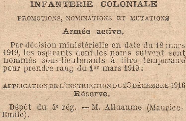Affecté au 2e Régiment d'Infanterie Coloniale D.M. du 29 avril 1927 J.O. du 1er Mai 1927.
