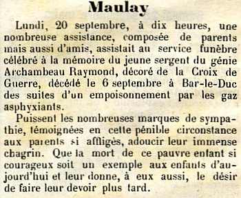 Décédé le 6 Septembre 1915 à Bar le Duc (Hôpital auxiliaire N° 111, suite de maladie) Avis Ministériel du 18 Septembre 1915.