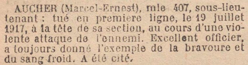Tué à l'ennemi le 19 Juillet 1917 à Craonne.