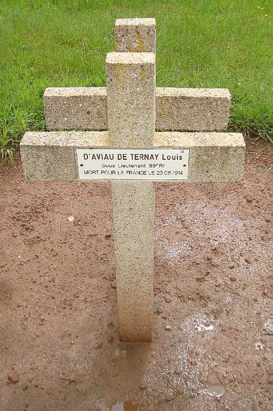 Sous-Lieutenant au 99ème R.I. Prisonnier décédé à Saulxures. "Jeune officier plein d'ardeur, s'est fait tuer bravement au combat de Saulxures le 24 Août 1914". Chevalier de la Légion d'honneur. Croix de guerre avec palme.