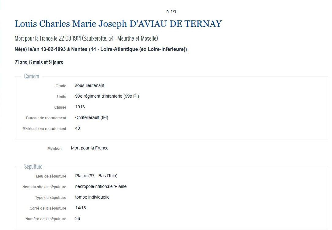 Photographie : Géraldine GEORGE - Mairie de PLAINE Il repose à la Nécropole Nationale PLAINE - Tombe 36 ( Lien )