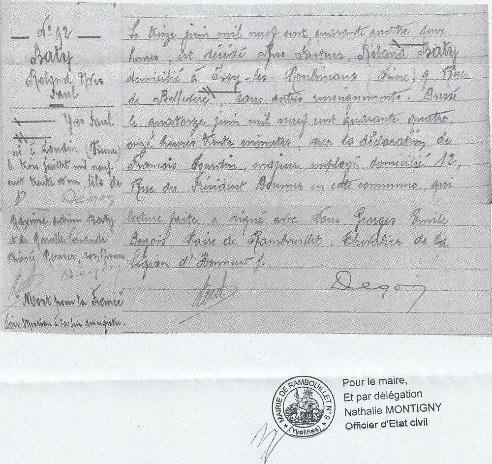 Fils d'Adrien et de Marcelle Fernande Aimée MERCIER. Résidait 9 rue Bellevue à Issy-les-Moulineaux (92). Victime civile. Décédé rue Pasteur lors du bombardement du quartier de la gare de Rambouillet par l'aviation alliée. Mention Mort pour la France attribuée le 31 octobre 1952.