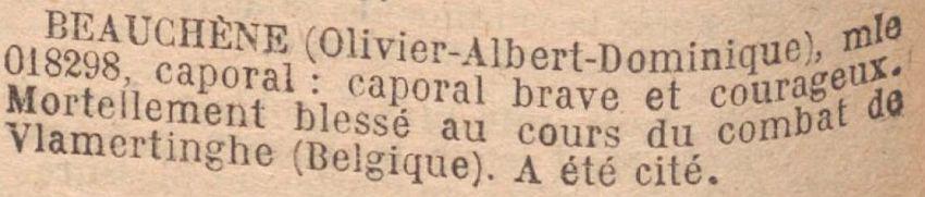 Tué à l'ennemi au combat de Vlamertinghe (Belgique) le 11 Novembre 1914.