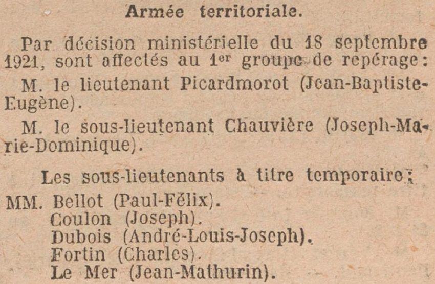 Affecté au 1er Groupe de repérage le 1er Janvier 1921.