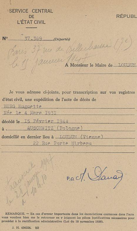 Dernière adresse connue : 13 rue Porte de Chinon à Loudun.