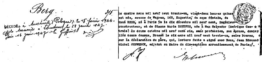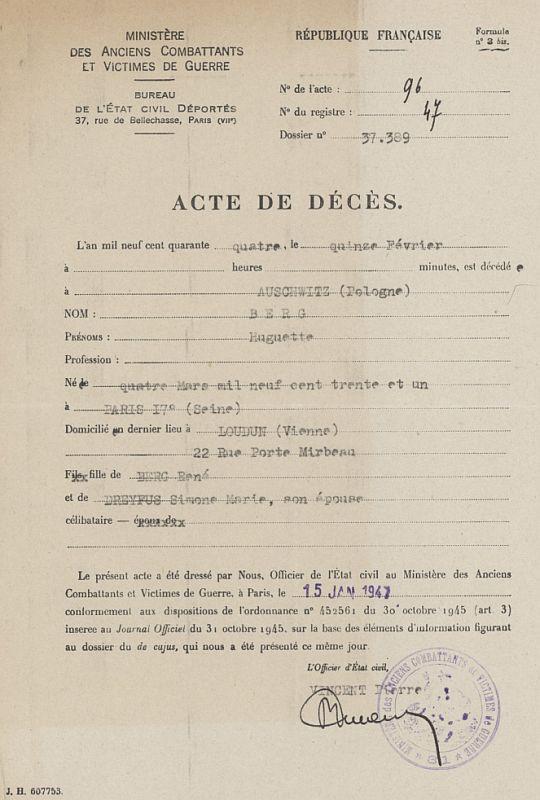 Convoi du : 10 février 1944 au départ de : Drancy (Seine-Saint-Denis) à destination de : Auschwitz (Pologne)