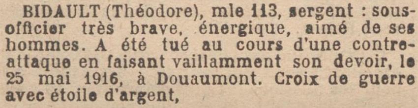 Tué à l'ennemi le 25 Mai 1916 (Avis Ministériel du 19 juin 1916, n'indiquant pas le lieu du décès).