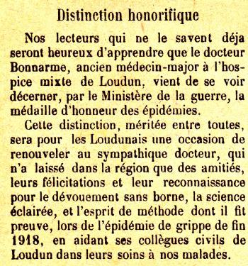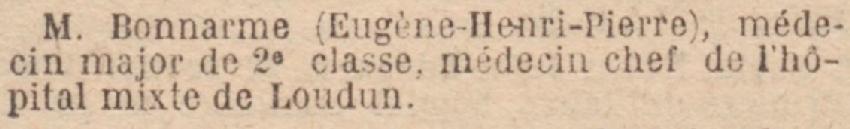 Médecin Major de 2e classe, rang du 20 Avril 1918, par décret du 1er Mai 1918 J.O. du 2 Mai 1918.
