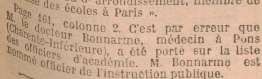 A produit la copie du Diplôme de Docteur en Médecine le 1er Novembre 1898. Nommé à la 1ère classe de son grade (D.M. du 25 Juin 1906).