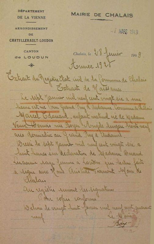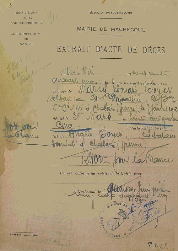 Chalais 7 Janvier 1926 - Machecoul 28 Mars 1945