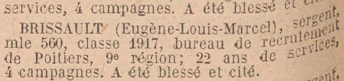 Passé au 22e Régiment d'Infanterie le 16 février 1917.