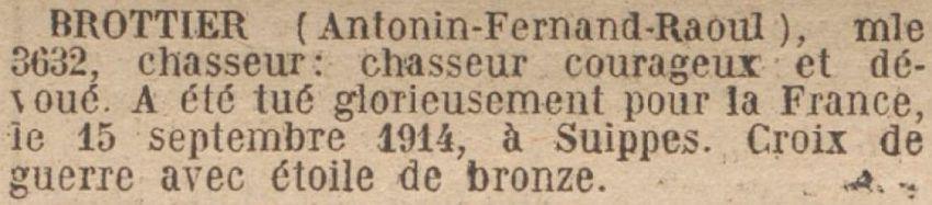 Disparu le 15 septembre 1914 à Suippes (Marne). Avis Ministériel N° 1344 G.R. en date du 1er Septembre 1916. Présumé décédé.