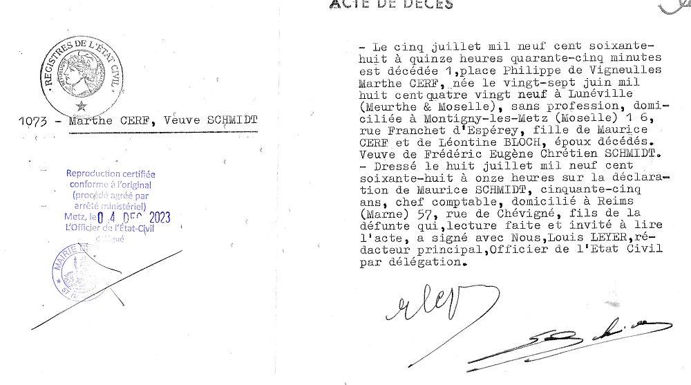 CERF Marthe épouse SCHMIDT Frédéric Eugène Chrétien