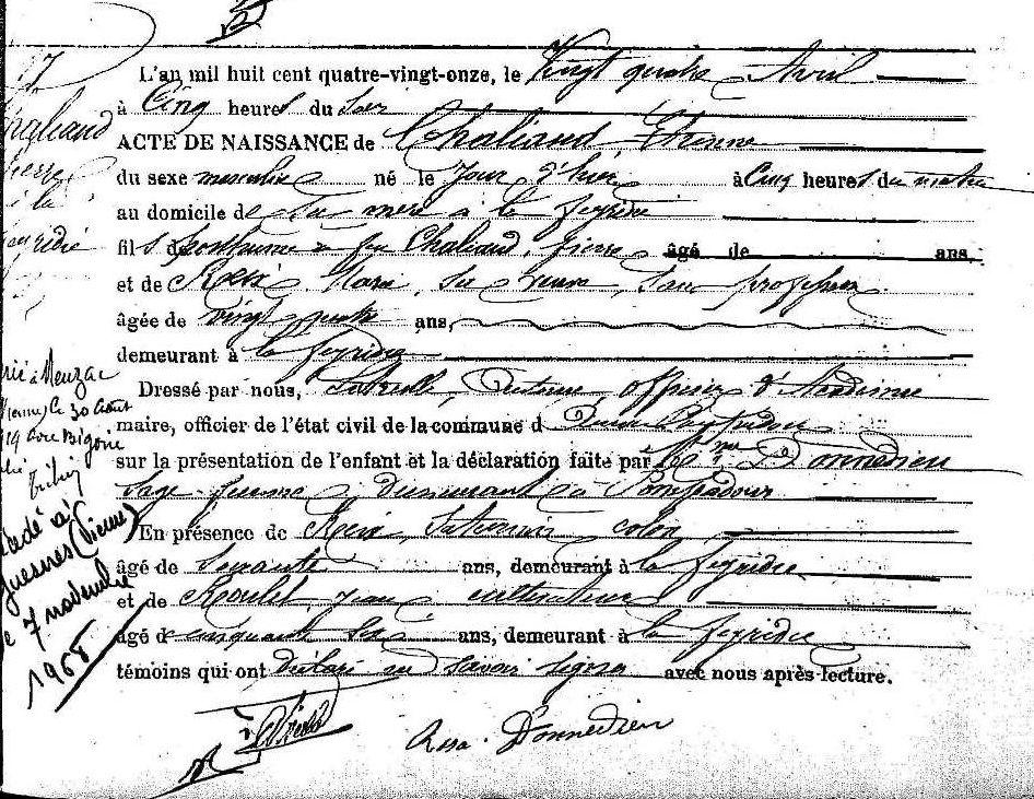 Passé au 1er Régiment d'Artillerie de Montagne le 11 Septembre 1913 par Décision Ministérielle du 27 Août 1913.