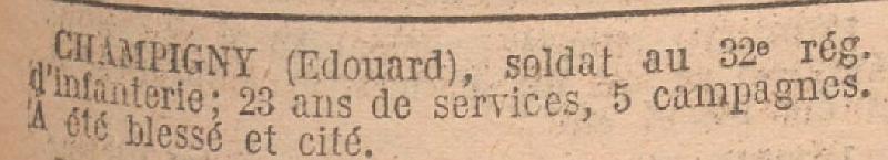 Cité à l'ordre du Régiment N° 106 du 9 Novembre 1918 "Très bon soldat ayant une belle attitude au feu. 2 fois blessé au cours de la campagne".