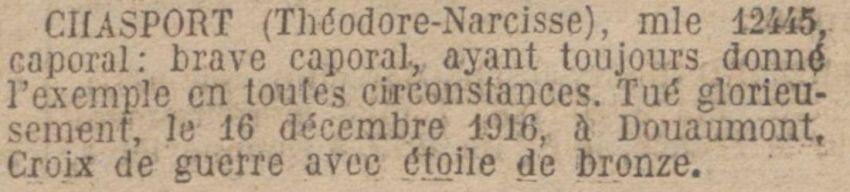 Disparu le 16 décembre 1916 à Douaumont-Bezonvaux (Meuse). Avis Ministériel 6226B du 15 mars 1917.