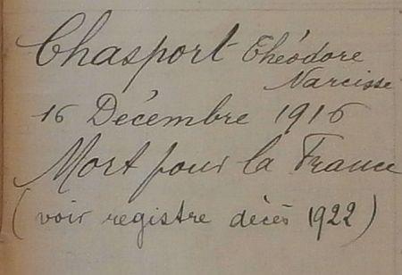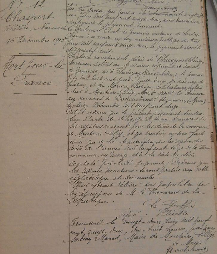 Décédé le 16 Décembre 1916. Décès fixé par jugement du Tribunal Civil de Loudun du 3 Juin 1922.