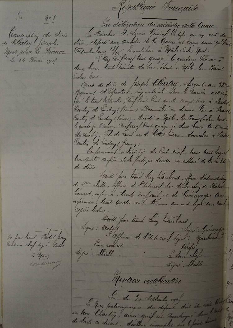 Arrivé au corps le 4 Août 1914.